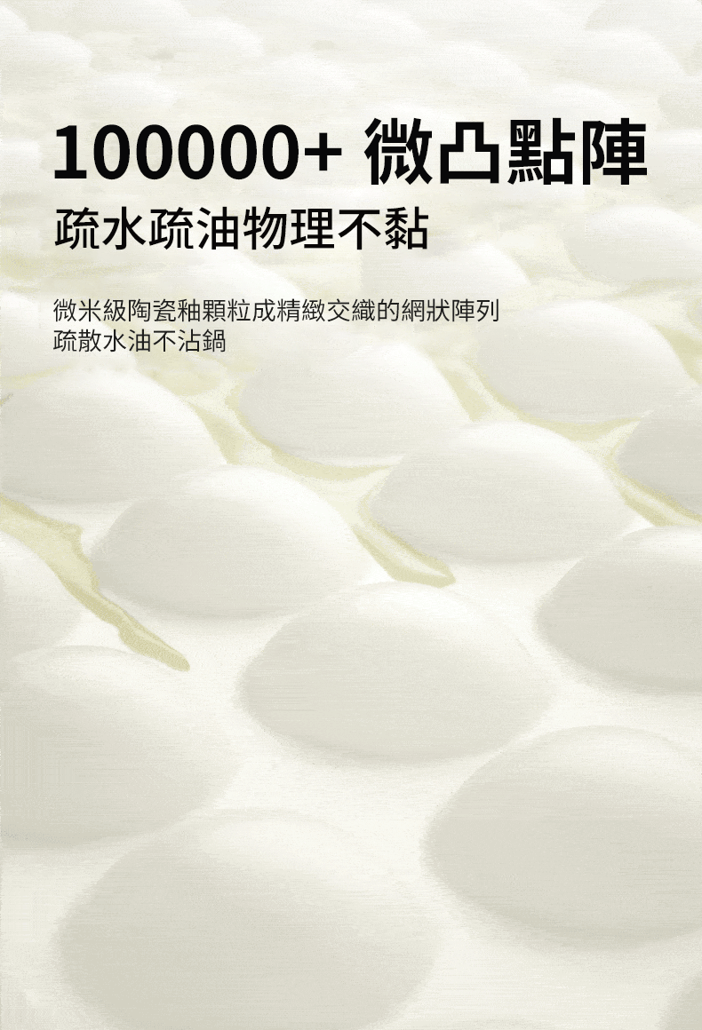 食物懸浮在顆粒上,減少食材與鍋面接觸,既能達到不粘的效果